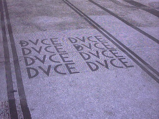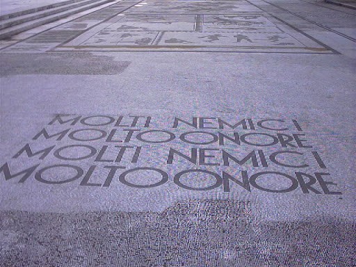 Figure 4 and 5: Details of the mosaics at the Foro Italico featuring the inscriptions “Many enemies, much honour” (MOLTI NEMICI, MOLTO ONORE) and “Duce.”